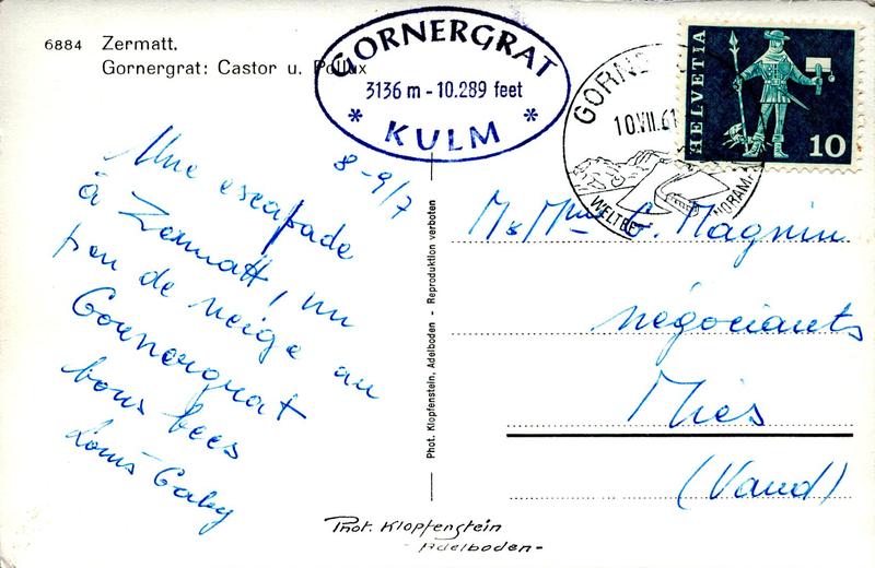 Zustandsbeschreibung der Ansichtskarte "Zermatt. Gornergrat: Castor u. Pollux"