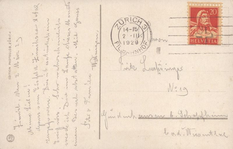 Zustandsbeschreibung der Ansichtskarte "Zürich und die Alpen"