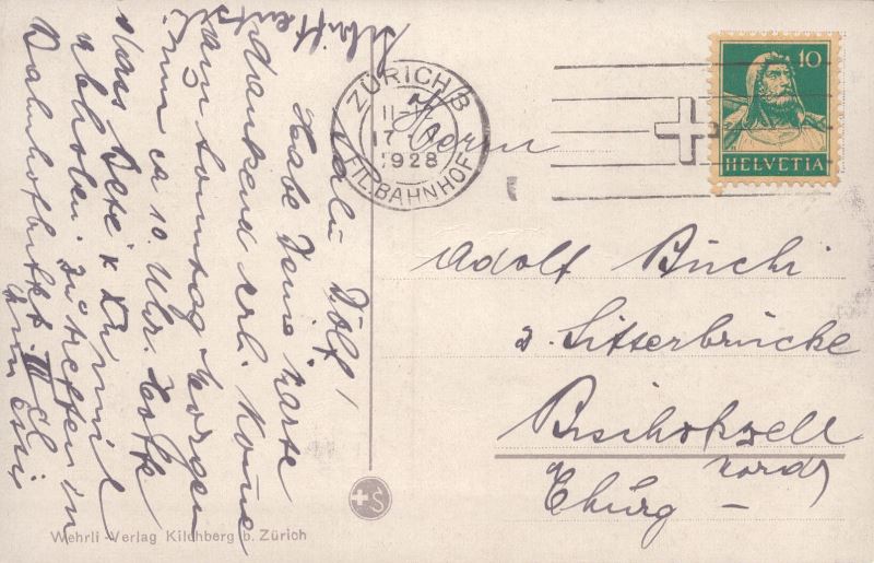 Zustandsbeschreibung der Ansichtskarte "Zürich und die Alpen"