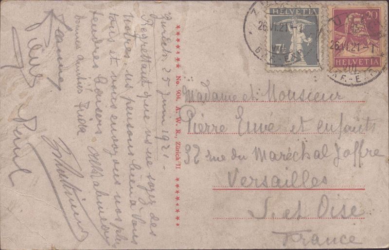 Zustandsbeschreibung der Ansichtskarte "Zürich und die Alpen"