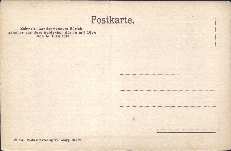 Zustandsbeschreibung der Ansichtskarte "Schweiz. Landesmuseum Zürich, Zimmer aus dem Seidenhof"