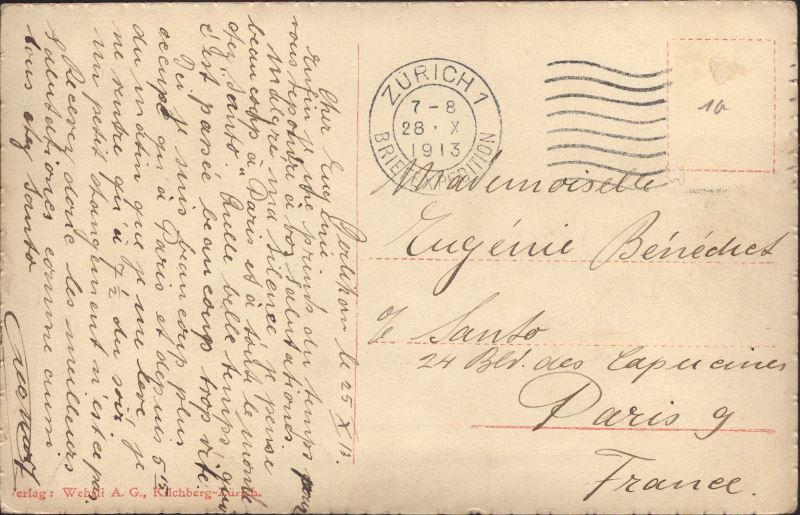 Zustandsbeschreibung der Ansichtskarte "Zürich und die Alpen"