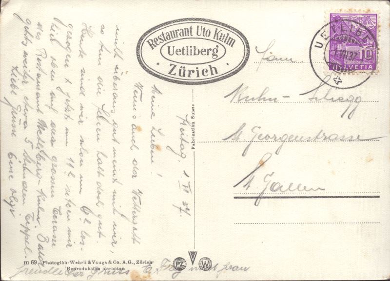 Zustandsbeschreibung der Ansichtskarte "Uetliberg, Restaurant Uto - Kulm"