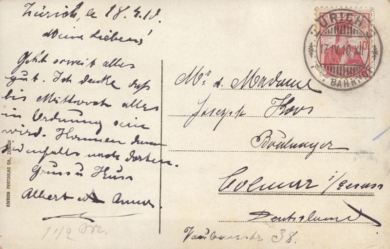 Zustandsbeschreibung der Ansichtskarte "Zürich - Alpenquai - Rotes Schloss und Tonhalle"