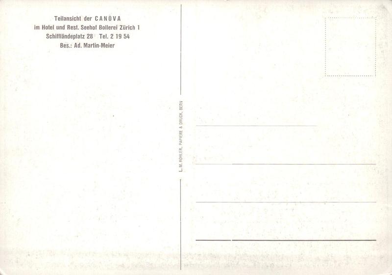 Zustandsbeschreibung der Ansichtskarte "Teilansicht der Canova im Hotel und Restaurant Seehof Bollerei, Zürich"