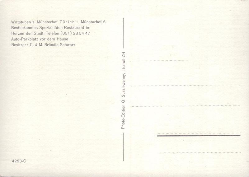 Zustandsbeschreibung der Ansichtskarte "Wirtenstuben z. Münsterhof, Zürich"