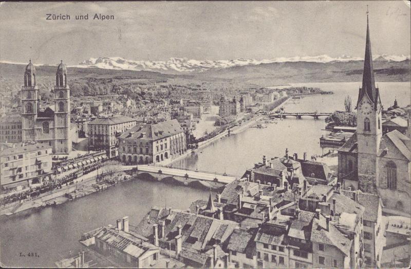 Zustandsbeschreibung der Ansichtskarte "Zürich und Alpen"