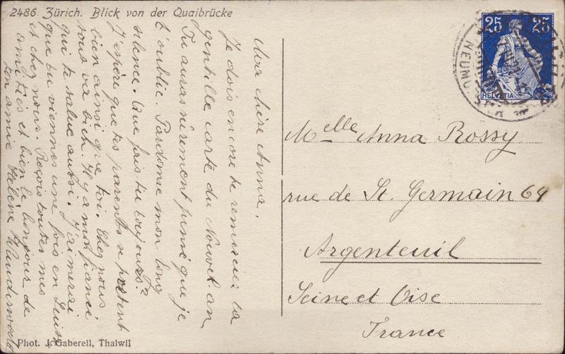 Zustandsbeschreibung der Ansichtskarte "Blick von der Quaibrücke, Zürich"