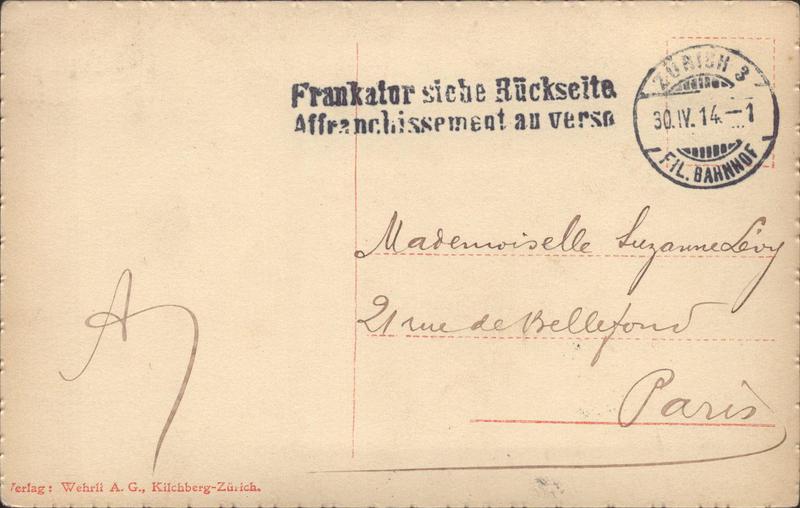 Zustandsbeschreibung der Ansichtskarte "Zürich und die Alpen"