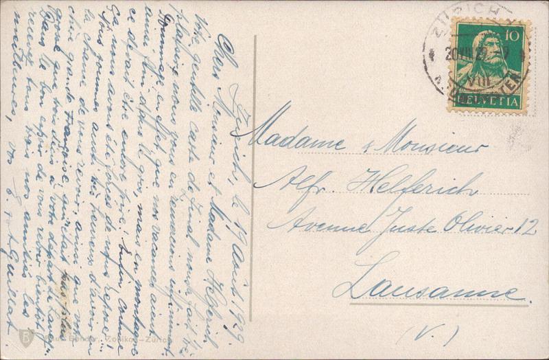 Zustandsbeschreibung der Ansichtskarte "Zürich und die Alpen"
