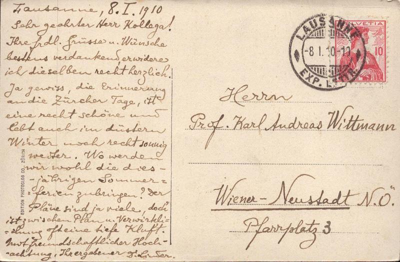Zustandsbeschreibung der Ansichtskarte "Zürich und die Alpen"