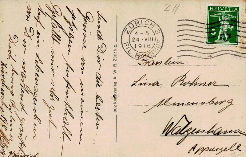 Zustandsbeschreibung der Ansichtskarte "Zürich und die Alpen"