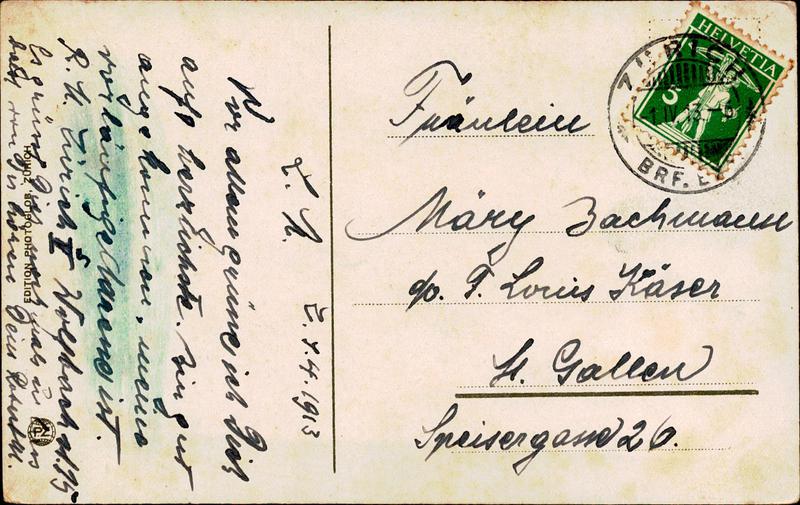 Zustandsbeschreibung der Ansichtskarte "Zürich und die Alpen"