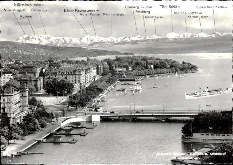 Zustandsbeschreibung der Ansichtskarte "Zürich und die Alpen"