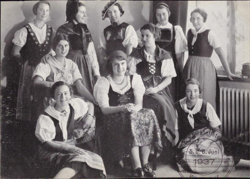Zustandsbeschreibung der Ansichtskarte "Trachtenfrauen 1937"